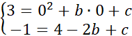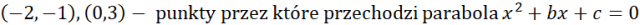 Znając współrzędne punktów przecięcia prostej i paraboli, ułóż układ równań i wylicz współczynniki b i c.