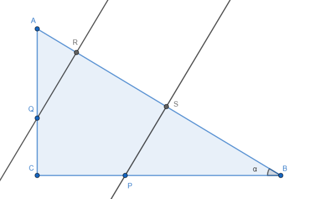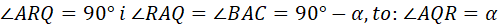 Oznacza to, że wszystkie trzy trójkąty ABC, ARQ i BSP są do siebie podobne z cechy kąt – kąt – kąt. -c. n. d.