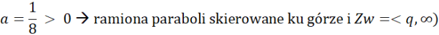 W tym zadaniu podaj jaki jest zbiór wartości funkcji kwadratowej, której miejsca zerowe, to –4 i 2, a miejsce przecięcia wykresu z osią y ma drugą współrzędną -1.