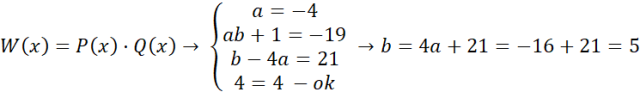 Musisz obliczyć wynik iloczynu wielomianów P i Q oraz porównać współczynniki otrzymanego wielomianu z współczynnikami wielomianami W.