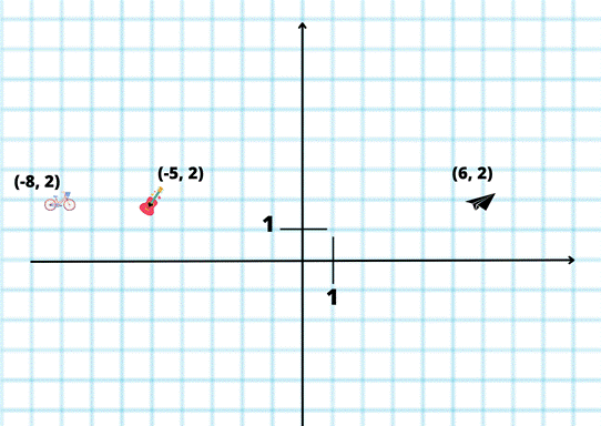 Punkty, które leżą na tej samej prostej, mają jedną taką samą współrzędną.