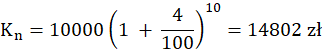 W tym zadaniu musisz obliczyć, ile będzie wynosić suma odsetek wpłaconych na rachunek po 10 latach.