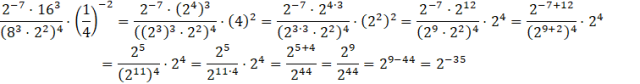 Musisz sprowadzić podstawy wszystkich potęgo do liczby 2, a następnie skorzystać z praw działań na potęgach takich jak: