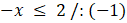 Opuść nawias, zmieniając znaki w wyrażeniach na przeciwne. Przenieś wszystkie wartości z „x” na jedną stronę nierówności, natomiast liczby na przeciwną stronę. Podziel obie strony nierówności przez –1. Rozwiązaniem jest przedział spełniający nierówność