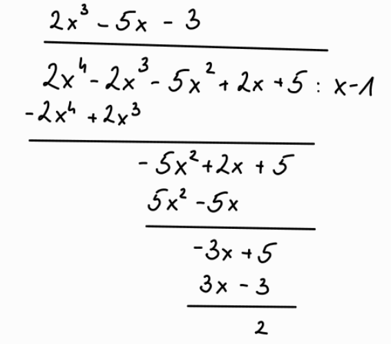 Wykonanie dzielenia wielomianu prowadzi do określenia wartości reszty z dzielenia.