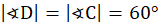 Odpowiedź A. Kąt przy wierzchołku D ma miarę 60°