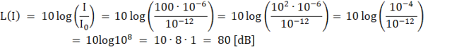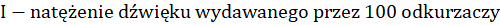 Poziom głośności dźwięku (w decybelach) można obliczyć ze wzoru: