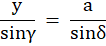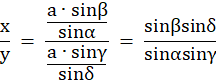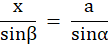 Długość przerywanej linii oznaczasz przez a. Z twierdzenia sinusów otrzymujesz stosunek długości odcinków danych w treści.