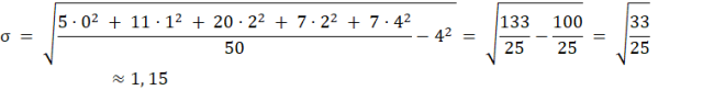 Oblicz odchylenie standardowe przedstawionych w tabeli danych zaokrąglonych do części setnych.