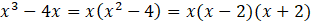 Mianownik jest równy 0 dla x = {-2,0,2}