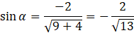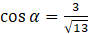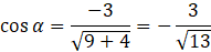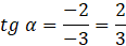 Dany jest kąt α, o którym wiadomo, że jego ramię końcowe przechodzi przez punkt o współrzędnych (-3, -2). Z podanych wartości zaznacz poprawną.