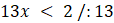 . Następnie, wymnóż nawiasy oraz przenieś wszystkie wartości z „x” na jedną stronę nierówności, natomiast liczby na przeciwną stronę. Na koniec podziel obie strony nierówności przez 13. Wskaż ułamki mniejsze od rozwinięcia dziesiętnego ułamka