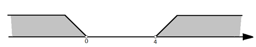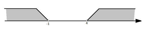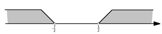 Zaznaczamy na osi liczbowej zbiory rozwiązań nierówności i ich sumę, która jest rozwiązaniem nierówności