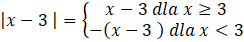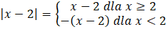 będzie równe 0, więc korzystając z definicji wartości bezwzględnej, zapisujemy: