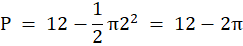 W tym zadaniu oblicz pole zacieniowanej części trójkąta, wiedząc, że z trójkąta o polu 12 wycięto trzy wycinki koła – każdy o promieniu 2 i środku w wierzchołku trójkąta.
