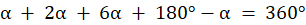 W tym zadaniu oblicz miarę największego kąta czworokąta wpisanego w okrąg o miarach α, 2 α i 6 α.