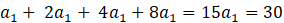 Wyznacz wartość pierwszego wyrazu ciągu i na tej podstawie oblicz sumę czterech początkowych wyrazów.
