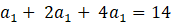W tym zadaniu musisz obliczyć sumę czterech początkowych wyrazów ciągu geometrycznego o ilorazie równym 2 i sumie trzech początkowych wyrazów równej 14.