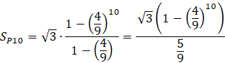 W tym zadaniu musisz obliczyć sumę pól dziesięciu początkowych trójkątów równobocznych, jeśli ich boki tworzą ciąg geometryczny, w którym