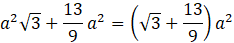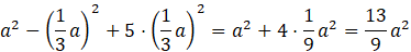Dany jest ostrosłup o wszystkich krawędziach równych 𝑎 i doklejony do niego kwadrat w sposób przedstawiony na rysunku. Wiedząc, że krawędź dolepionego sześcianu jest trzy razy krótsza od krawędzi ostrosłupa, oblicz pole powierzchni tej bryły.