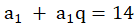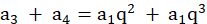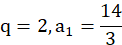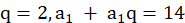 Oblicz pierwszy wyraz ciągu, wykorzystując sumę dwóch pierwszych oraz ilorazu ciągu: