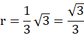Promień kuli wpisanej w stożek to w przekroju okrąg wpisany w trójkąt równoramienny. Promień okręgu jest równy jednej trzeciej wysokości trójkąta, która wynosi