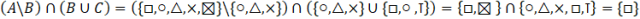 Mając podane zbiory A, B, C, wyznacz różnicę zbiorów A i B, następnie sumę zbioru B i C. Następnie wyznacz iloczyn otrzymanych zbiorów.