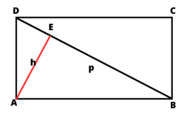 W tym zadaniu policz długość przekątnej p z twierdzenia Pitagorasa dla trójkąta ABD, a następnie skorzystaj ze wzoru na pole dla trójkąta ABD, aby obliczyć szukaną wysokość