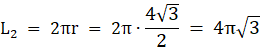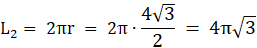 W tym zadaniu oblicz o ile większy jest obwód okręgu opisanego na sześciokącie foremnym o boku 4 od obwodu okręgu wpisanego w ten sześciokąt.