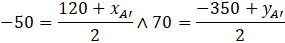 Zapisz współrzędne środka odcinka łączącego punkty A i A’ przy pomocy wzoru, a następnie przyrównaj do znanych z treści zadania wartości:
