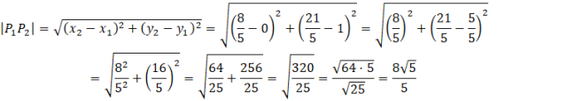 Szukana długość cięciwy to odległość między tymi dwoma punktami: