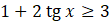 Dana jest nierówność 1 + 2 tg x ≥ 3. Wiedząc, że k jest dowolną liczbą całkowitą, z poniższych przedziałów wybierz ten, który jest jej rozwiązaniem.