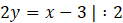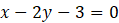 Przekształć równanie x – 2y – 3 = 0 na postać kierunkową: