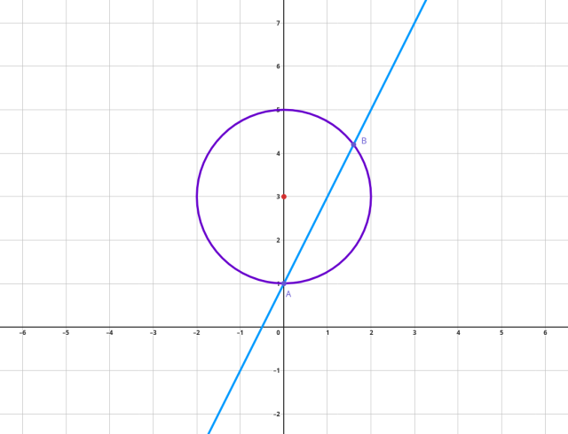 Wykorzystaj punkty przecięcia okręgu i prostej, by obliczyć długość odcinka ze wzoru: