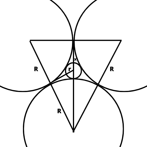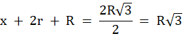 Zauważ, że środki okręgów o promieniach równych R są wierzchołkami trójkąta równobocznego o boku długości 2R. Skorzystaj ze wzoru na wysokość trójkąta równobocznego.