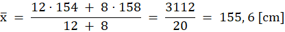 Oblicz średnią wzrostu grupy dzieci, wiedząc, że 12 z nich ma średnią wzrostu 154 cm, a 8 dzieci 158 cm.