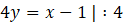 Przekształć równanie x – 4y – 1 = 0 na postać kierunkową: