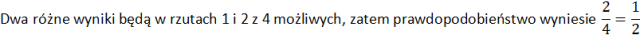 Wykonujesz rzut dwiema monetami. Oblicz prawdopodobieństwo tego, że na każdej monecie będzie inny wynik. Wybierz z poniższych odpowiedzi: