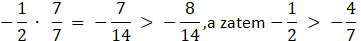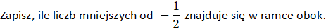 Pamiętaj, że w przypadku liczb ujemnych większa jest ta, której wartość bezwzględna jest mniejsza. Każda liczba dodatnia lub równa 0 jest większa od liczby ujemnej. Ponadto, aby porównać ze sobą ułamki, należy sprowadzić je do wspólnego mianownika: