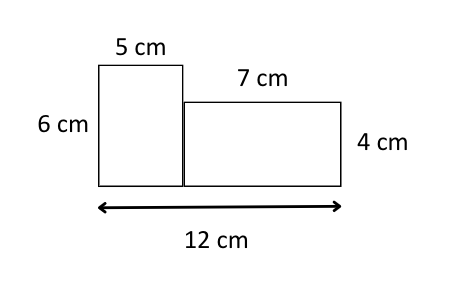 Podziel przedstawioną figurę na dwa prostokąty, jak na rysunku powyżej i oblicz pole każdego prostokąta osobno.