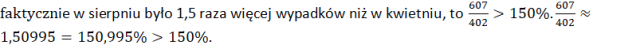 Rozważmy trzecie zdanie. Liczba wypadków z sierpnia 2015 roku = 607, z kwietnia = 402. Jeśli