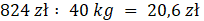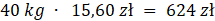 Oblicz, jaką cenę detaliczną powinien ustalić Pan Przedsiębiorczy cukierków, jeśli kupił 40 kg w hurtowni, w cenie 15,60 zł za kilogram i chciałby zarobić na nich 200 zł.