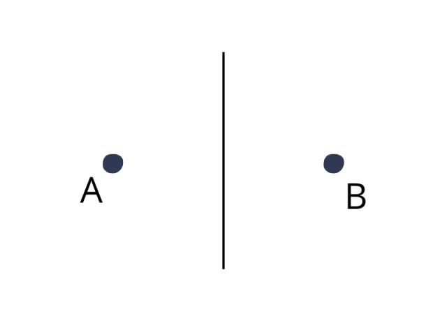 Pamiętaj, że dwa różne punkty są symetryczne względem jakiejś prostej gdy ta prosta jest symetralną odcinka jaki tworzą te punkty.