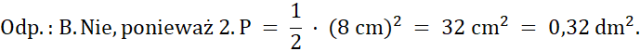 Przeczytaj uważnie treść w tabeli zastanów się czy istnieje kwadrat o przekątnej 8 cm i polu 0,64 dm2 i wskaż poprawne odpowiedzi.