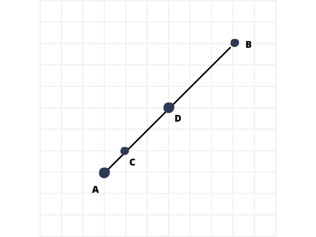 Zaznacz punkty kratowe A i B. Odnajdź punkty kratowe na półprostej AB oraz półprostej BA w taki sposób, aby odległość tych punktów od punktu A była różna.
