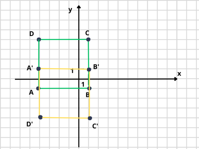 A’ = (-4, 1), B’ = (1, 1), C’ = (1, -4), D’ = (-4, -4)