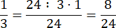 24 dzielimy przez wartość mianownika – 3, a następnie wykonujemy iloczyn przez wartość licznika – 1: