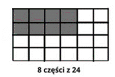 Jeśli prostokąty musimy podzielić na 24 równe części, to każdy ułamek sprowadzamy do mianownika 24, więc aby zapisać ułamek