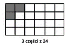 Jeśli prostokąty musimy podzielić na 24 równe części, to każdy ułamek sprowadzamy do mianownika 24, więc aby zapisać ułamek