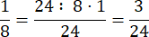 24 dzielimy przez wartość mianownika – 8, a następnie wykonujemy iloczyn przez wartość licznika – 1: